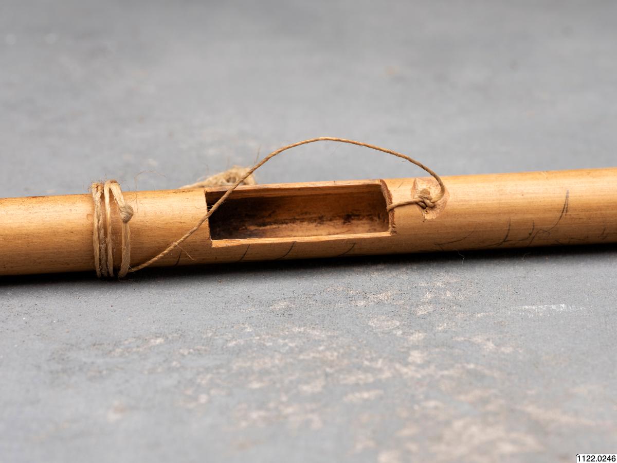 • förfärdigat av en bit bamburör. Längds 30 cm [ocr]