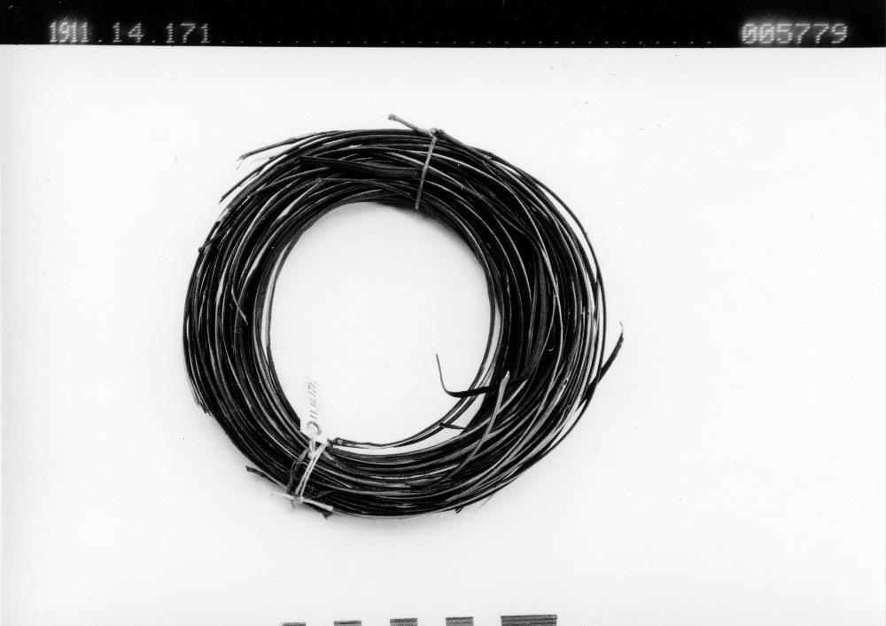 Material för kor tillverkning. Uppsplittrade kvistar av "redbud" (Cercis occidentalis).Användas för att framställa korgarnas rödbruna ornament. Calaveras County Californien [ocr]