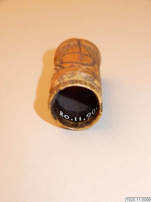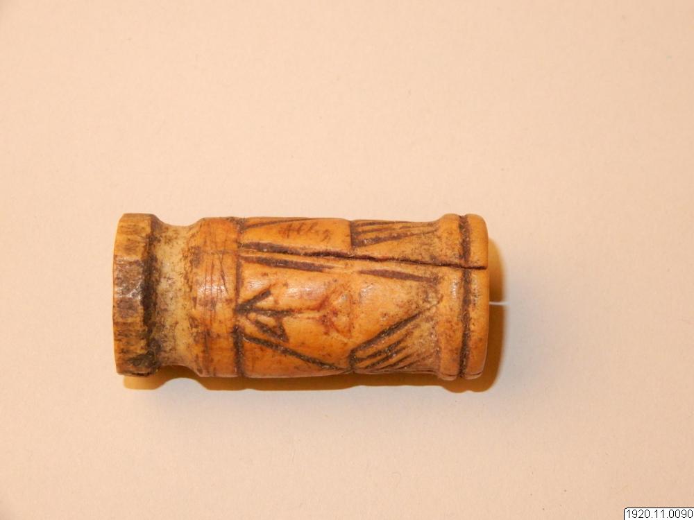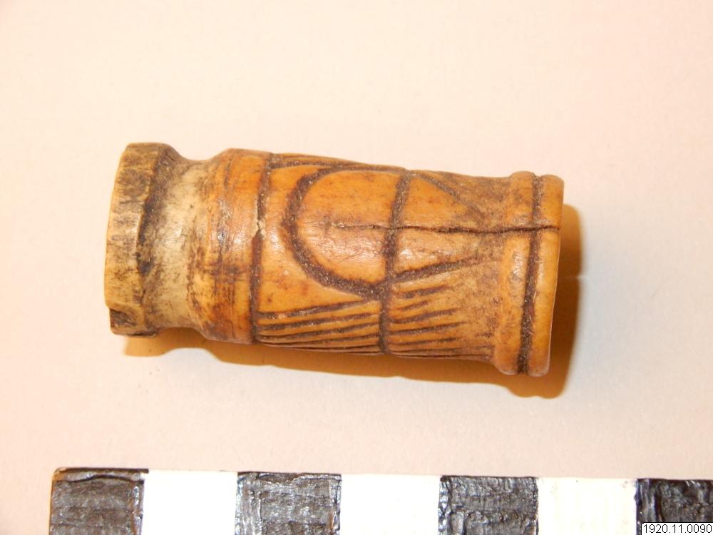 • Munstycke av ben, till kulpung. Dekorerat med inristade linjer. Höjd 4,5 cm. Ho32tensli)orG. [ocr]