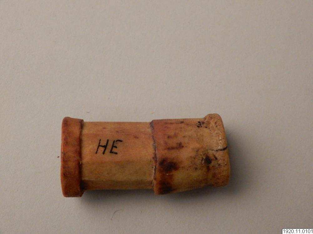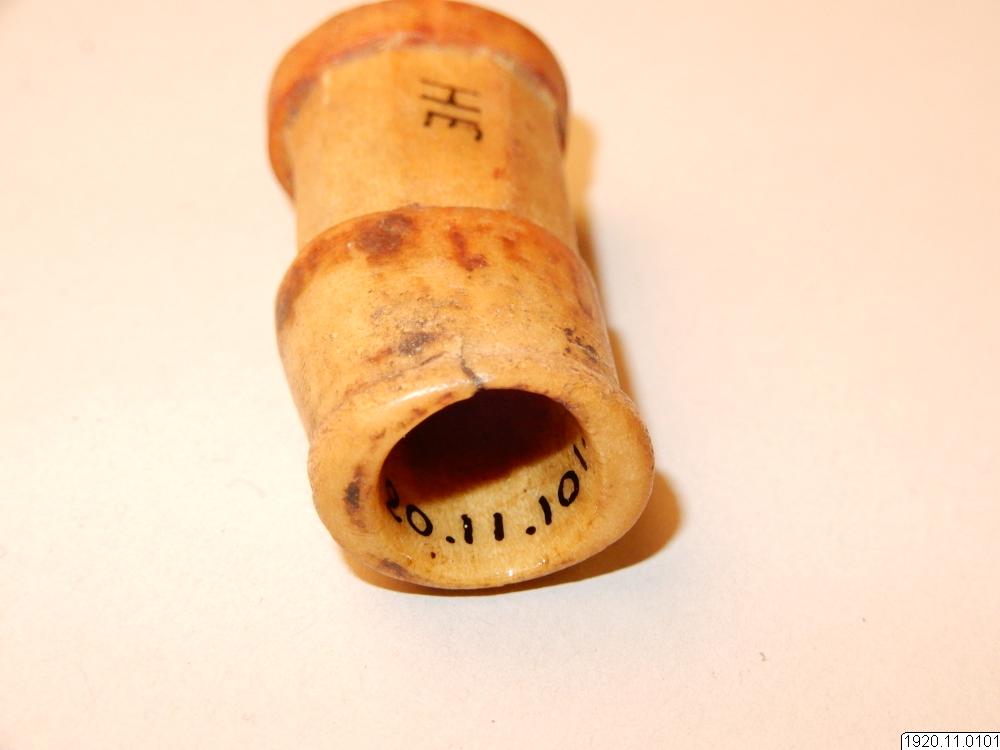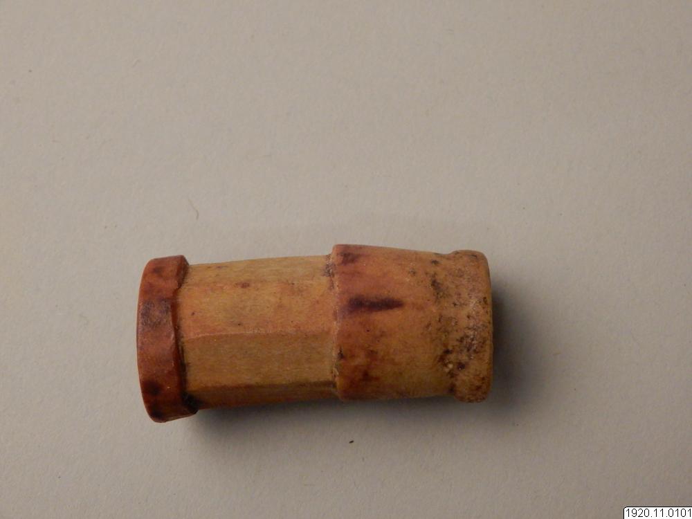 • Munstycke av ben. Användes för uppblåsning av flytblåsa. Längd 4 cm. [ocr]