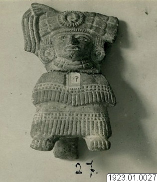 • försedd med stöd baktill. Helfigur. Höjd:. 13.5 em. Se bildark kartong 9A. Azcapotzalc0 Mexiko [ocr]