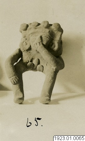 • Terruotklagym. Sittande, fallisk. Höjd: 4 cm. Se bildark. kartong 9A. [ocr]