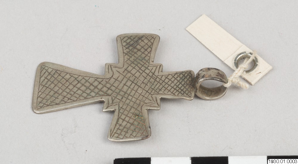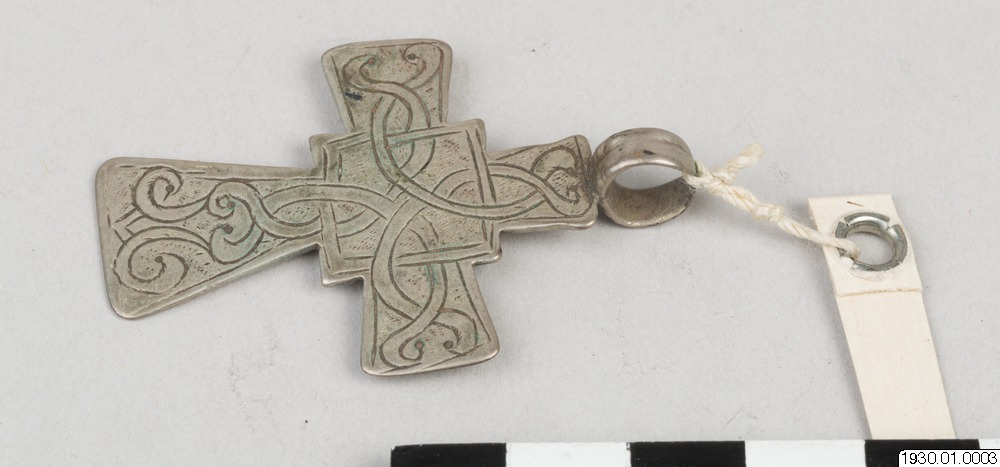 • Å ena sidan slingornament, å den andra enkel ornering i form av raka, varandra korsande streck (ur generalkatalogen)