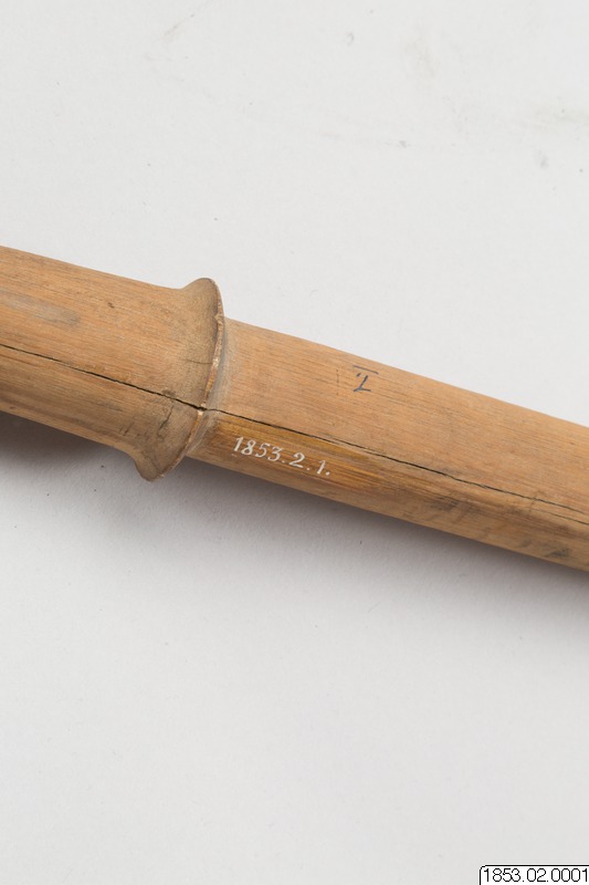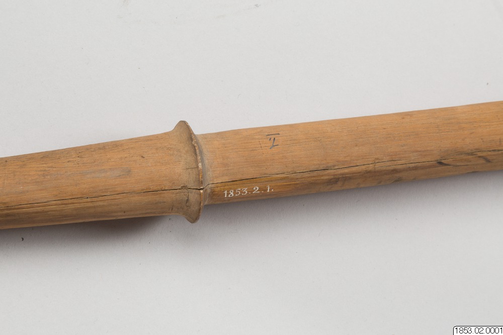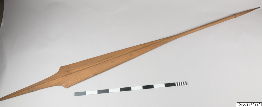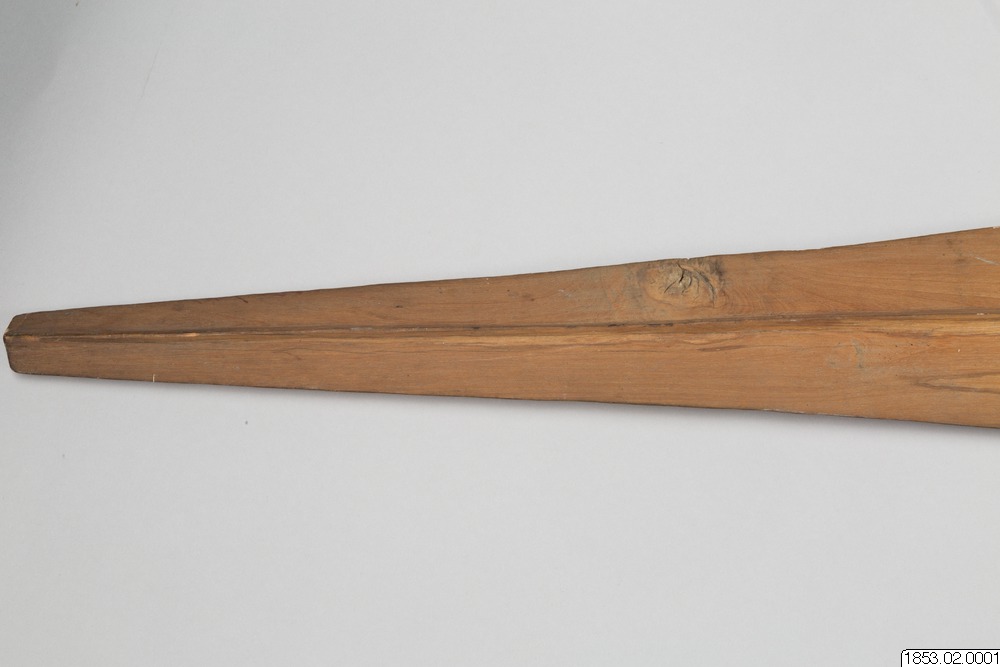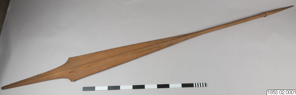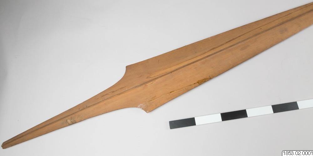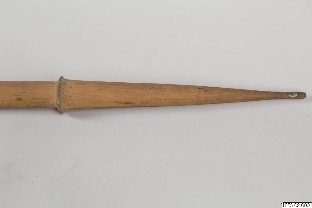 • Långt, tveeggat, bredbladigt vapen av trä...