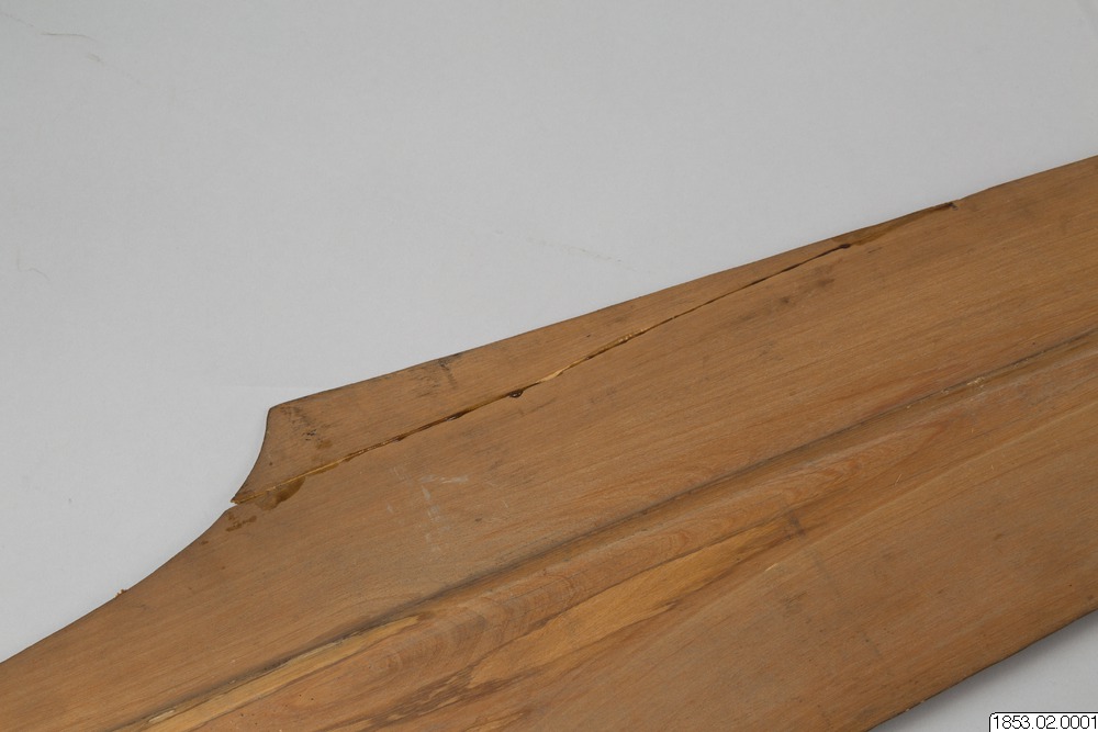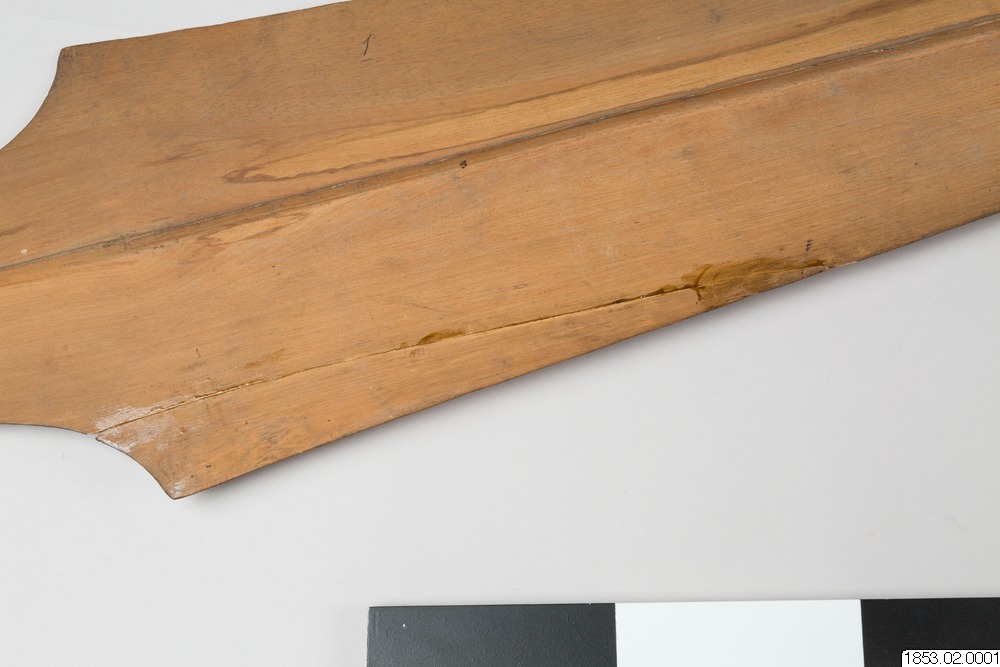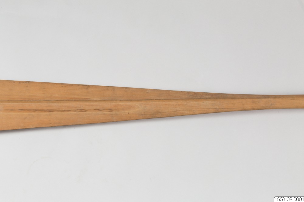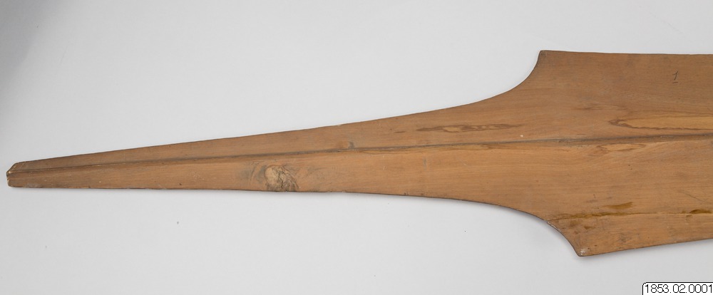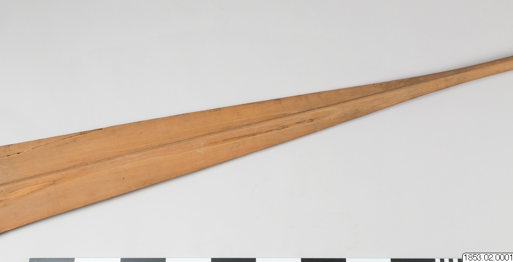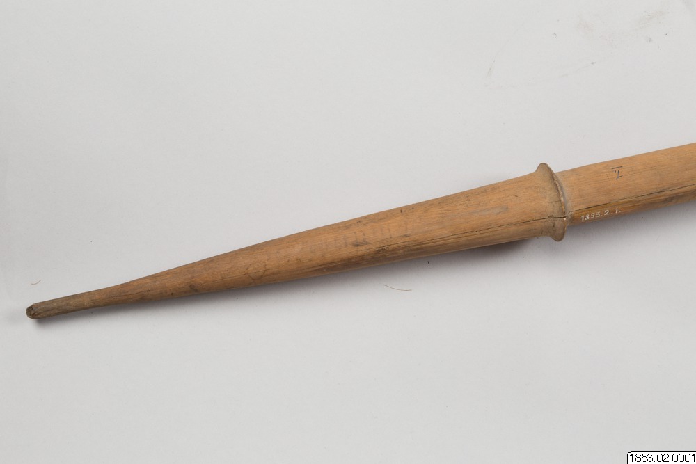 • Långt, tveeggat, bredbladigt vapen av trä...