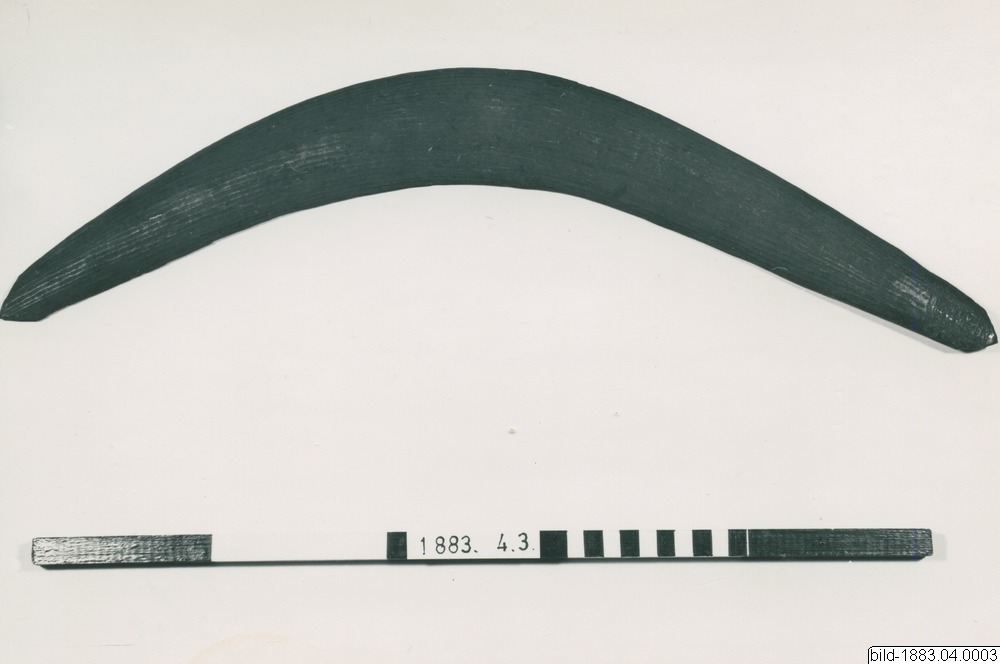 • Bumerang av ljust rödmålat trä.
