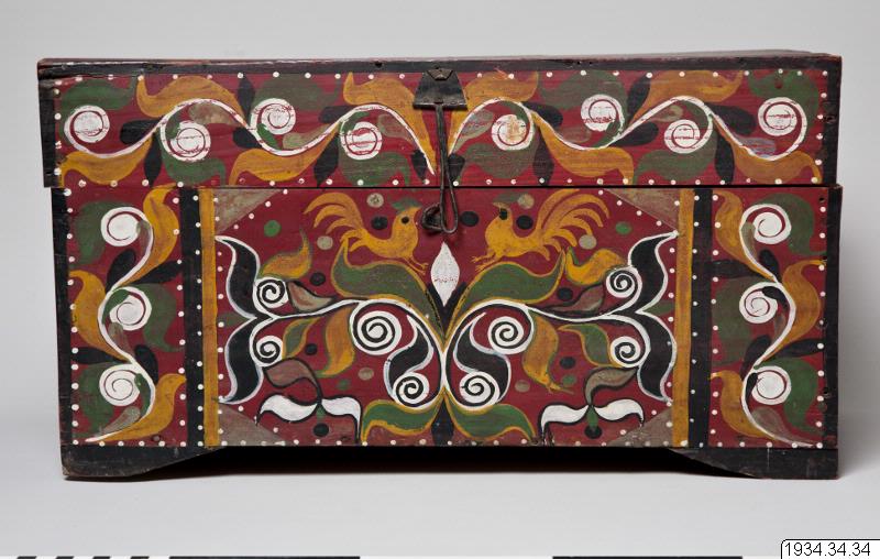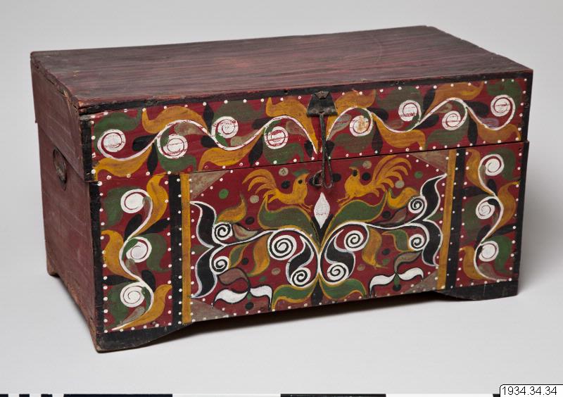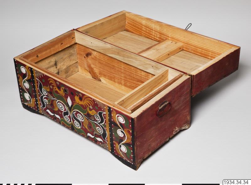 • Lådor. Morobrudars lådor (hope chest). Enkla lätta trälådor, på framsidan målade, stå på fyra upphöjda kanter. (katalog)