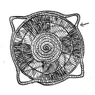 • Korgbricka i rund form och kantad med utskjutande rottingslinga med fyra hörn.