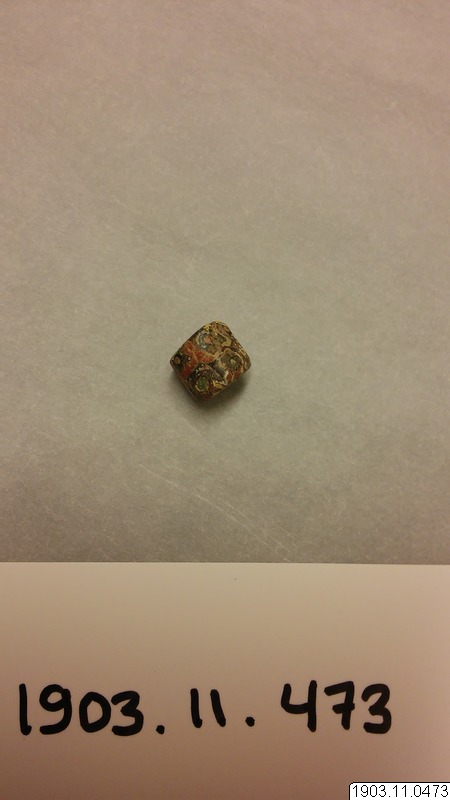 Arkeologiskt föremål förvärvat i Borazan. Föremålen inköpta av Hedin från lokalbefolkningen. I brev hem av den 10 januari 1896 skriver Hedin: "Yesterday I visited the village of Borazan, where those remarkable Buddhist antiquities are found, but I made practically no discoveries. On the other hand the natives come along daily with their terracotta figures, pots, precious stones with engraved portraits, coins, Buddha images etc. ... and I have acquired a lot of these things cheaply enough. There is an old Tartar, of Orenburg, living here, by the name of Rafikoff, and he speaks Russian fluently. He has paid me several visits, and when I called upon him he presented me with a number of these antiquities." - cit Montell 1936 nr 7.