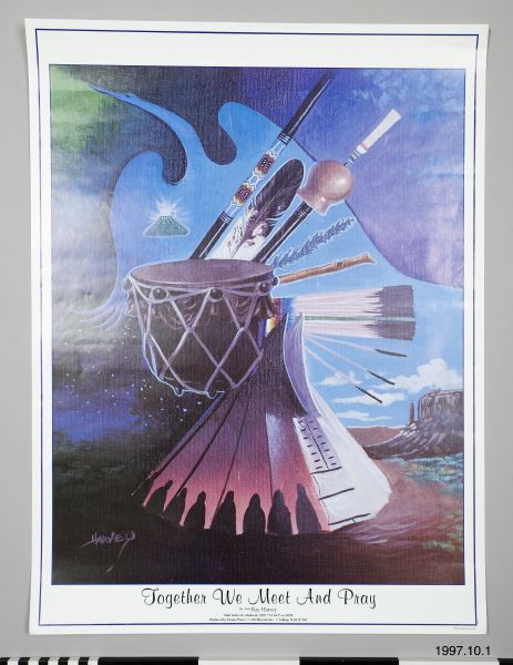 These two posters were purchased in Gallup, NM, USA, during Staffan Brunius´ IPAM-exchange stay at MIAC, Santa Fe, NM, spring 1996. These posters were sold in a store which was visited by many American indians from the area. These posters are not an expression of "traditional contemporay Native American art" but were said to be popular among younger American Indians. (SB, 2010-02-23).