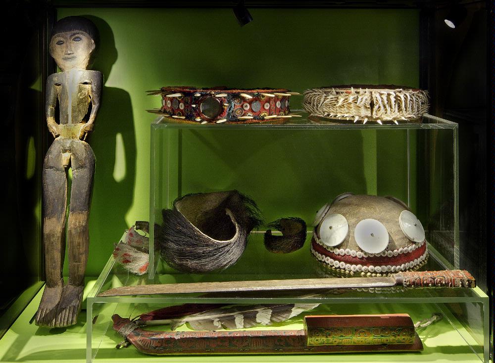 When the items were collected, between 1895 and 1945, Taiwan was a Japanese colony. Its indigenous populations were studied and they were to be assimilated. This was often done by use of rather brutal methods. The wooden statuette probably demonstrates how a paiwan artist would depict a Japanese colonizer.