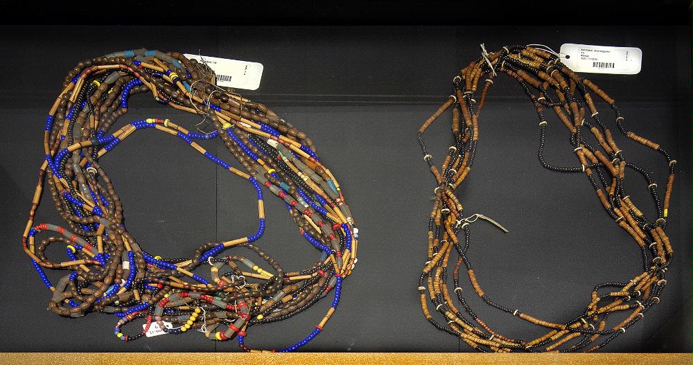 Two necklaces from Marakwet, Kenya: one from the 1970s, one collected in 2000. This kind of necklace is worn by young men who have gone through their initiation ceremony, when they return from weeks of severe trials in the woods