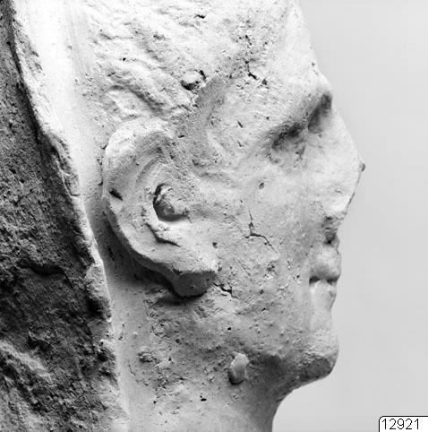 • Votivgåva i terrakotta, huvud.