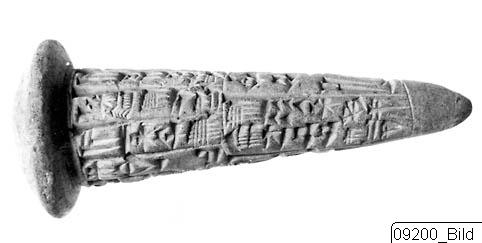 Lerkon med sumerisk inskrift, kilskrift.Ur-Baba, Lagash härskare, 2150 f.Kr.