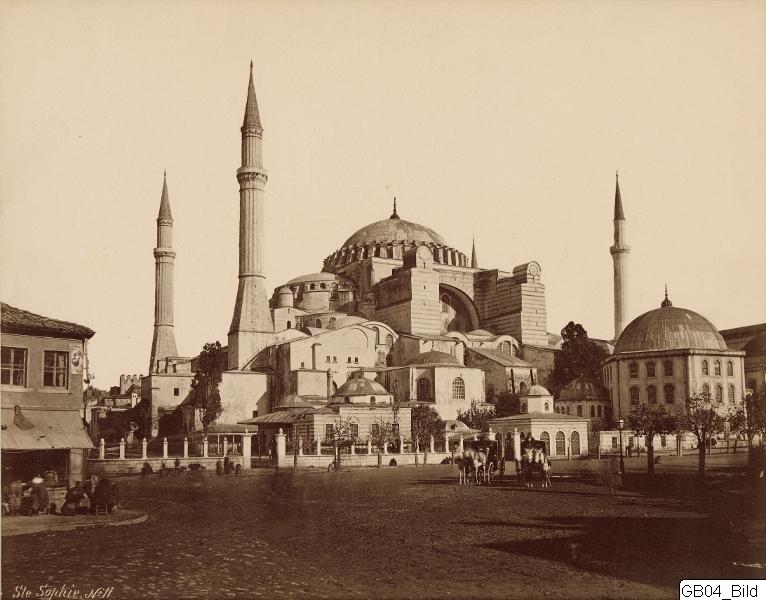 Ste Sophie, ca 1875 The morgen of St. Sophia was commenced in the year 531, by the Emperor gustiman, and completed in 538. 100 architects, with 100 master masons, and 10000 masons...