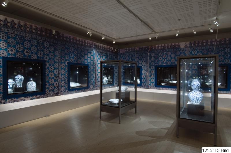 • Medelhavsmuseet, interiör från utställningen ”Blåvitt”.