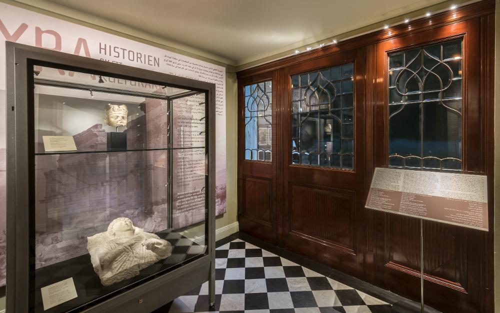 • Interiör av gröna rummet med utställning av föremål från Palmyra.