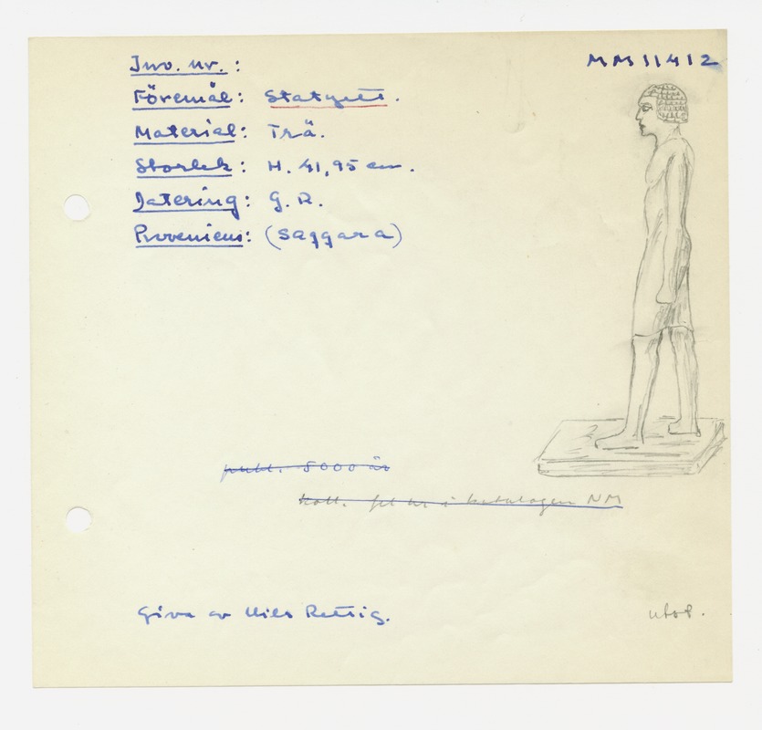 • Katalogkort ur Egyptiska avdelningens lappkatalog, D1B:3, Medelhavsmuseet. Riksantikvarieämbetet och Statens historiska museer, MM 11 000-11 499.