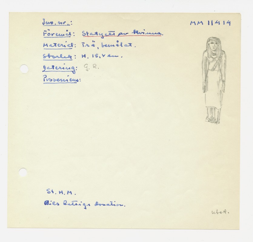 • Katalogkort ur Egyptiska avdelningens lappkatalog, D1B:3, Medelhavsmuseet. Riksantikvarieämbetet och Statens historiska museer, MM 11 000-11 499.