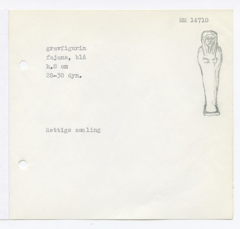 • Katalogkort ur Egyptiska avdelningens lappkatalog, D1B:6, Medelhavsmuseet. Riksantikvarieämbetet och Statens historiska museer, MM 14 500-14 999.