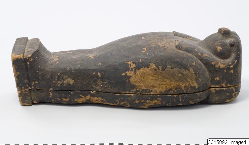 • Kista i form av en falk. Kistan innehåller en Osiris-formad pseudomumie. En så kallad kornmumie.