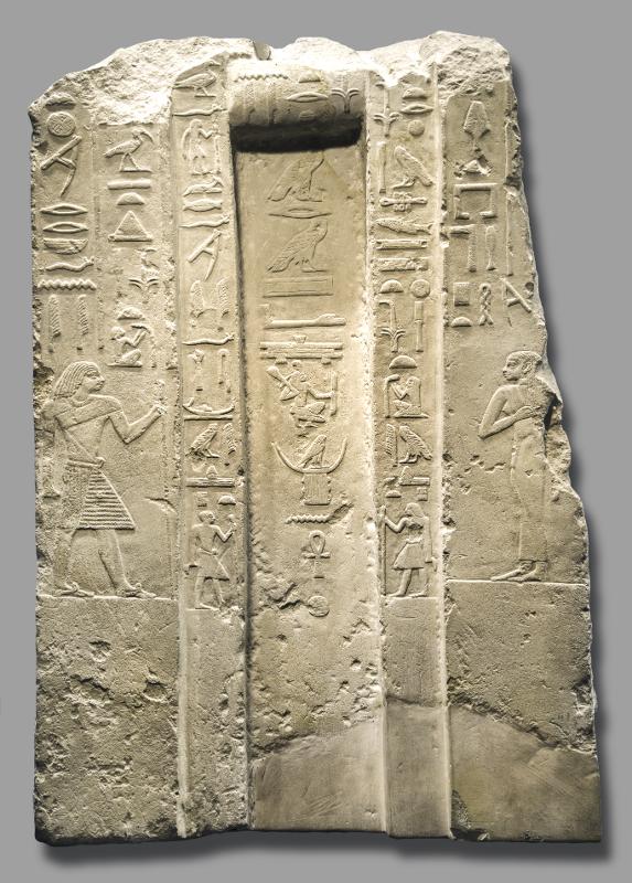 False door from a tomb at Giza, 4th Dynasty. In the middle of this false door the name and title of the tomb owner is written: General Niankh-nemty. He was probably from a region in southern Egypt where the god Nemty, which is part of his name, was popular. During the heydays of the Old Kingdom, it was prestigious to be buried in the vicinity of the capital Memphis, even though one had worked and lived in other parts of the country.