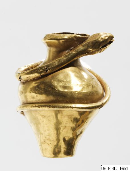 According to the Békésy catalogue the dating of the vase is 1500 BC, which contradicts the dating according to E. Küster (9th-8th century BC). According to M. von Heland in Georg von Békésy’s Antiksamling, 1974, p 76, it is possible that the presence of the snake suggests an association to the temple of Asklepios, god of medicine and healing, which is known in Bergama during the Hellenistic period. Possibly the vase is a votive gift dedicated to Asklepios.