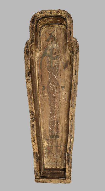 Vid ankomst till Sverige vilade mumien fortfarande i sina egna människoformade kistor, två stycken inuti varandra. Den var redan då delvis uppackad eller uppfläkt; någon hade skurit upp linnet runt ansiktet och tagit sig igenom flera lager tyg, framför allt över bröstet och buken. Höger arm hade också lindats upp till viss del, men den vänstra hade lämnats i fred. Det ser ut att vara gjort i stor hast, kanske av en gravplundrare som letade efter amuletter.