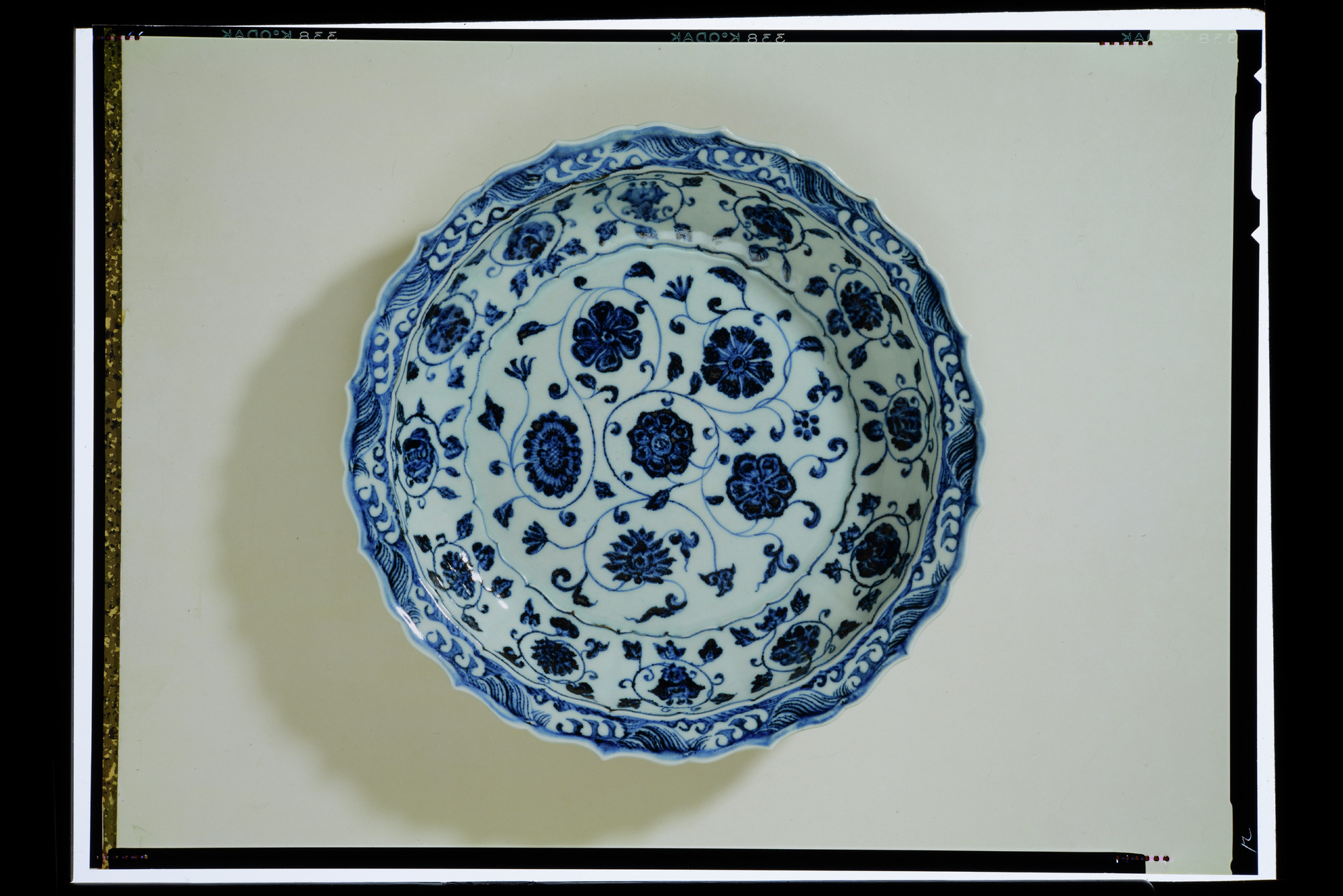 Text på plastficka: OM 1977:75. Östasiatiska Museet. Museum of Far Eastern Antiquities. Stockholm Sweden. Fat från början av 1400-talet, Ming-dynastin, Kina. Fotograf. Erik Cornerlius. Statens Konstm...
