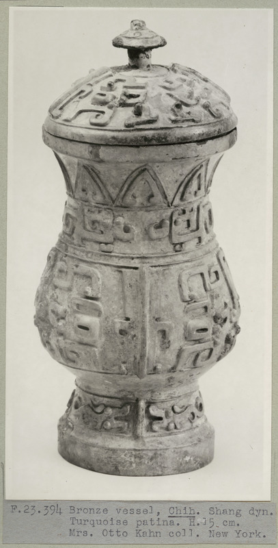 • F.23310-23578, Fotos av bronskärl, lackarbeten m.m. hopsamlade av Professor B. Karlgren under resan i U.S.A. sommaren 1948. Ur följande samlingar: Nelson Gallery (Nelson-Atkins Museum of Art)., Kansas City; Royal Ontario Museum; C. T. Loo, New York; Mrs. Otto Kahn, New York; Pritz Löwbeer, New York; Freer Gallery of Art, Washington.
