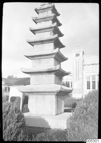 Den sju våningar höga stenpagoden vid Namgyewonji i Kaesong byggdes under Goryeo-dynastin. Den utsågs till Koreas National Treasure No. 100 den 20 december 1962. Det låg ursprungligen i Kaesong City, men flyttades till Gyeongbokgung-palatset 1915 där den alltså stod när Sirén fotograferade den. År 2005 flyttades den igen, denna gång till Koreas nationalmuseum i Yongsan 2005.