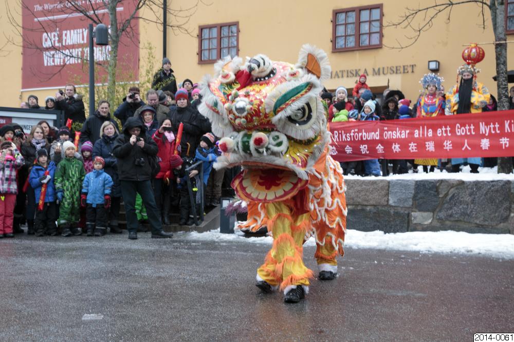 • Dokumentation av firandet av det kinesiska nyåret, hästens år, vid Östasiatiska museet, Skeppsholmen, 2 februari 2014. Närmare 2000 personer valde att komma till Skeppsholmen och se utomhusshow, skriva kalligrafi, prova på teceremoni, klippa ut och dekorera hästar, gå med på visningar och ta reda på sitt eget årsdjur. Just hästen spelar en viktig roll i kinesisk kultur. Den står för styrka, elegan... Visa hela