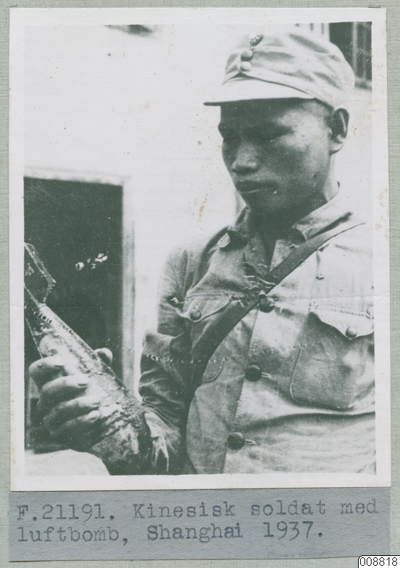 • Kinesisk soldat med luftbomb, Shanghai, 1937.