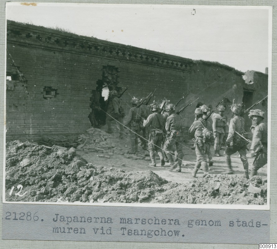 • Japanerna marshera genom stadsmuren vid Tsangchow (Cangzhou).