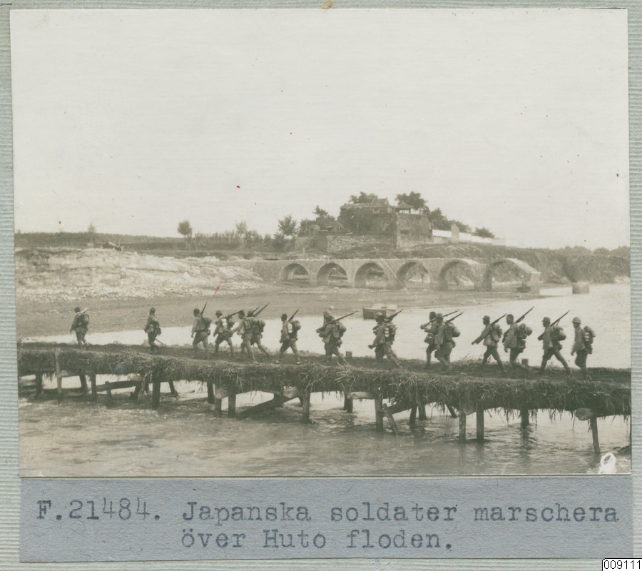 • Japanska soldater marschera över Huto floden.