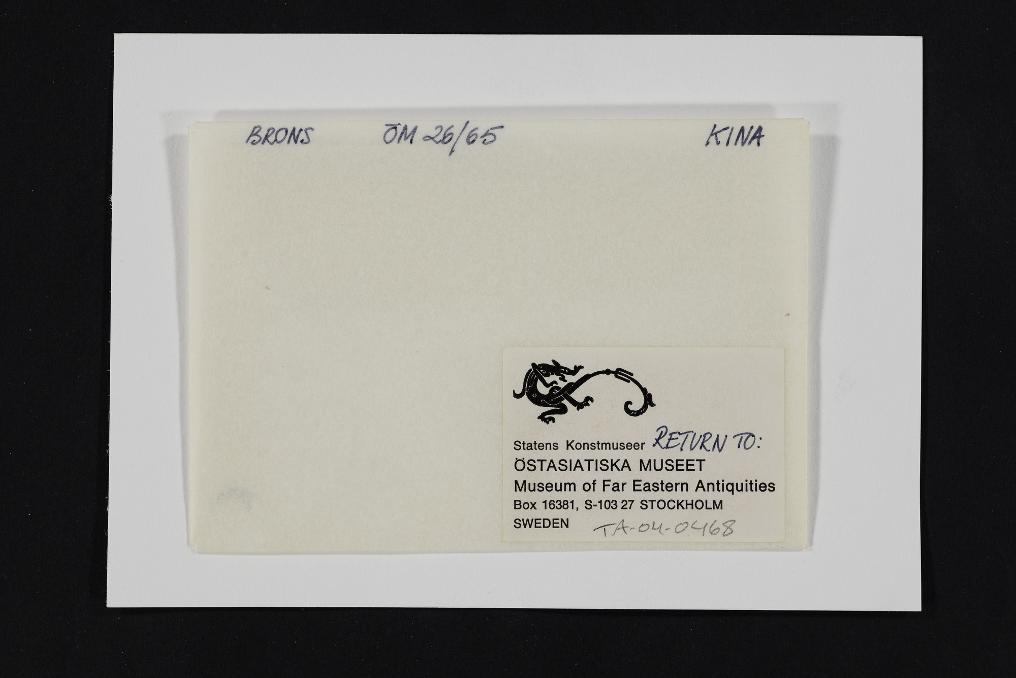Källa <presOrganization> Statens museer för världskultur - Östasiatiska museet