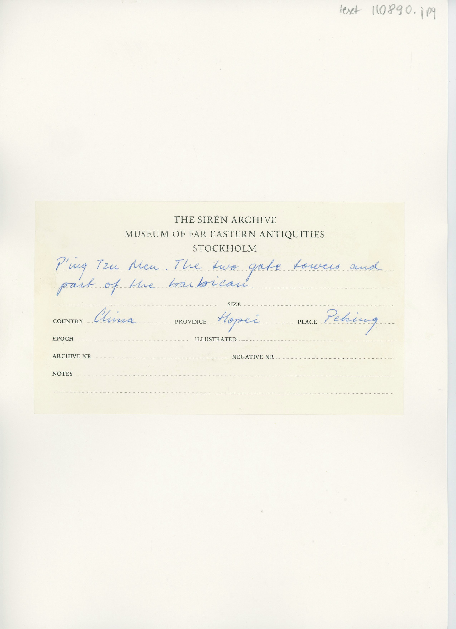 • Katalogkort för Osvald Siréns bildsamling.