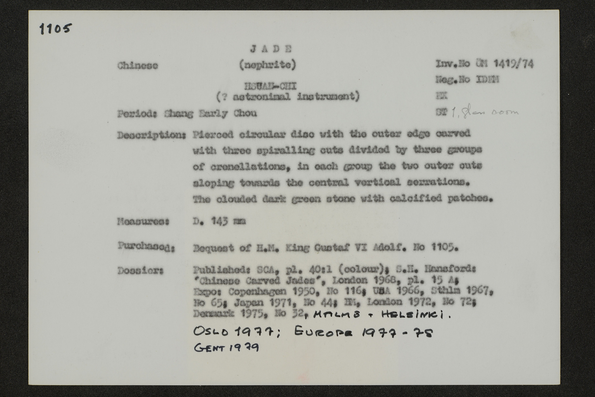 • Katalogkort ur Östasiatiska museets arkiv som beskriver föremål ur samlingarna.