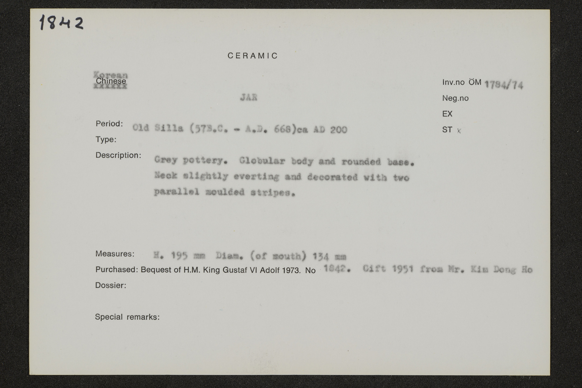• Katalogkort ur Östasiatiska museets arkiv som beskriver föremål ur samlingarna.