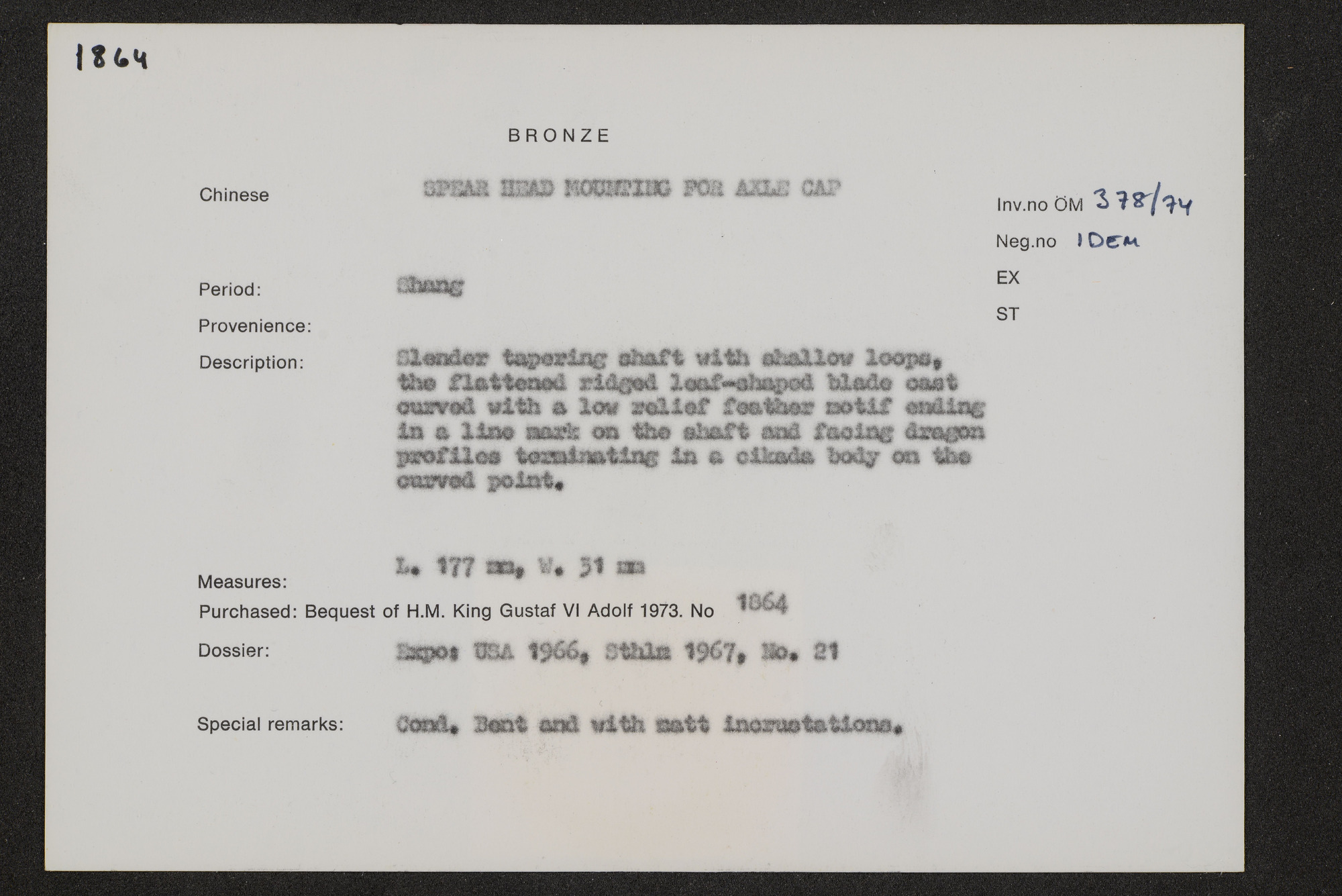 • Katalogkort ur Östasiatiska museets arkiv som beskriver föremål ur samlingarna.