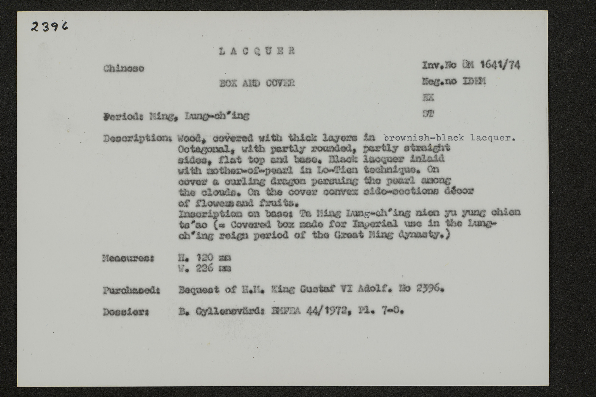 • Katalogkort ur Östasiatiska museets arkiv som beskriver föremål ur samlingarna.