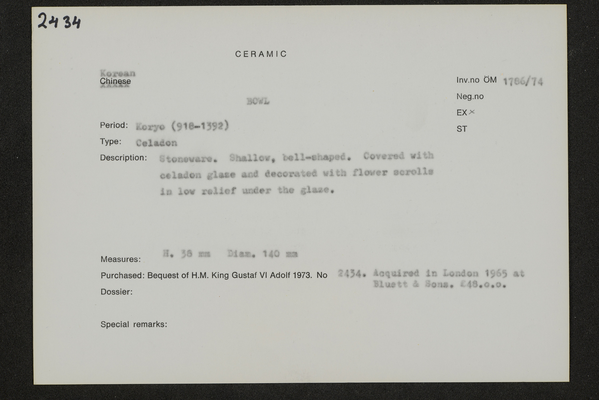 • Katalogkort ur Östasiatiska museets arkiv som beskriver föremål ur samlingarna.