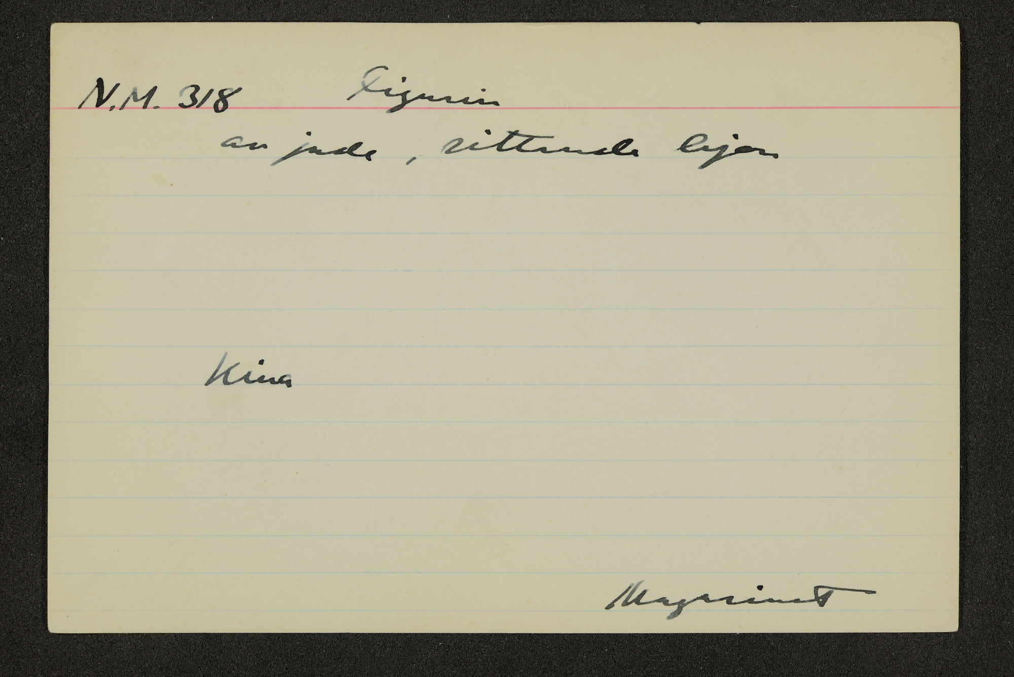 • Katalogkort ur Östasiatiska museets arkiv som beskriver föremål ur samlingarna.
