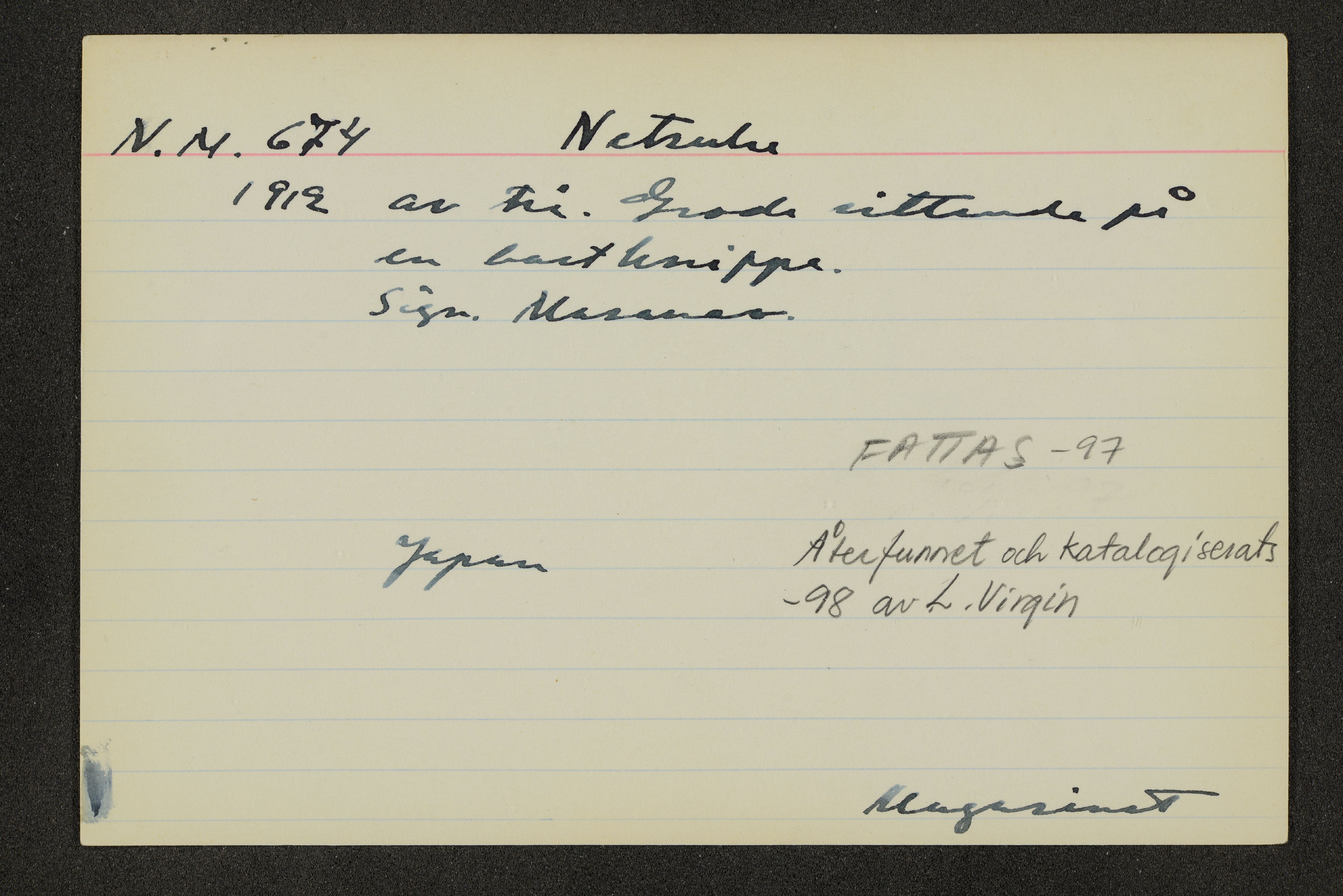• Katalogkort ur Östasiatiska museets arkiv som beskriver föremål ur samlingarna.