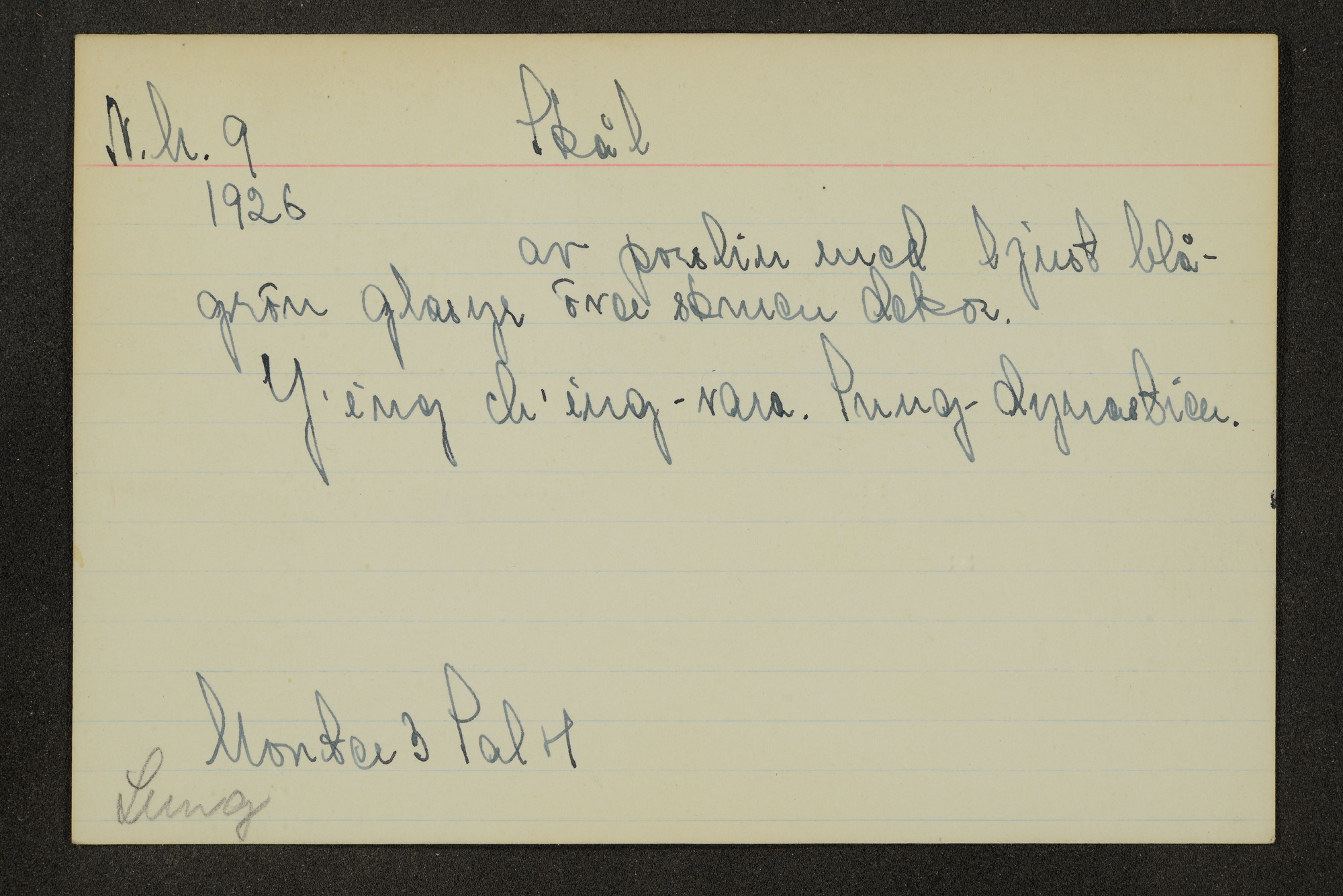 • Katalogkort ur Östasiatiska museets arkiv som beskriver föremål ur samlingarna.