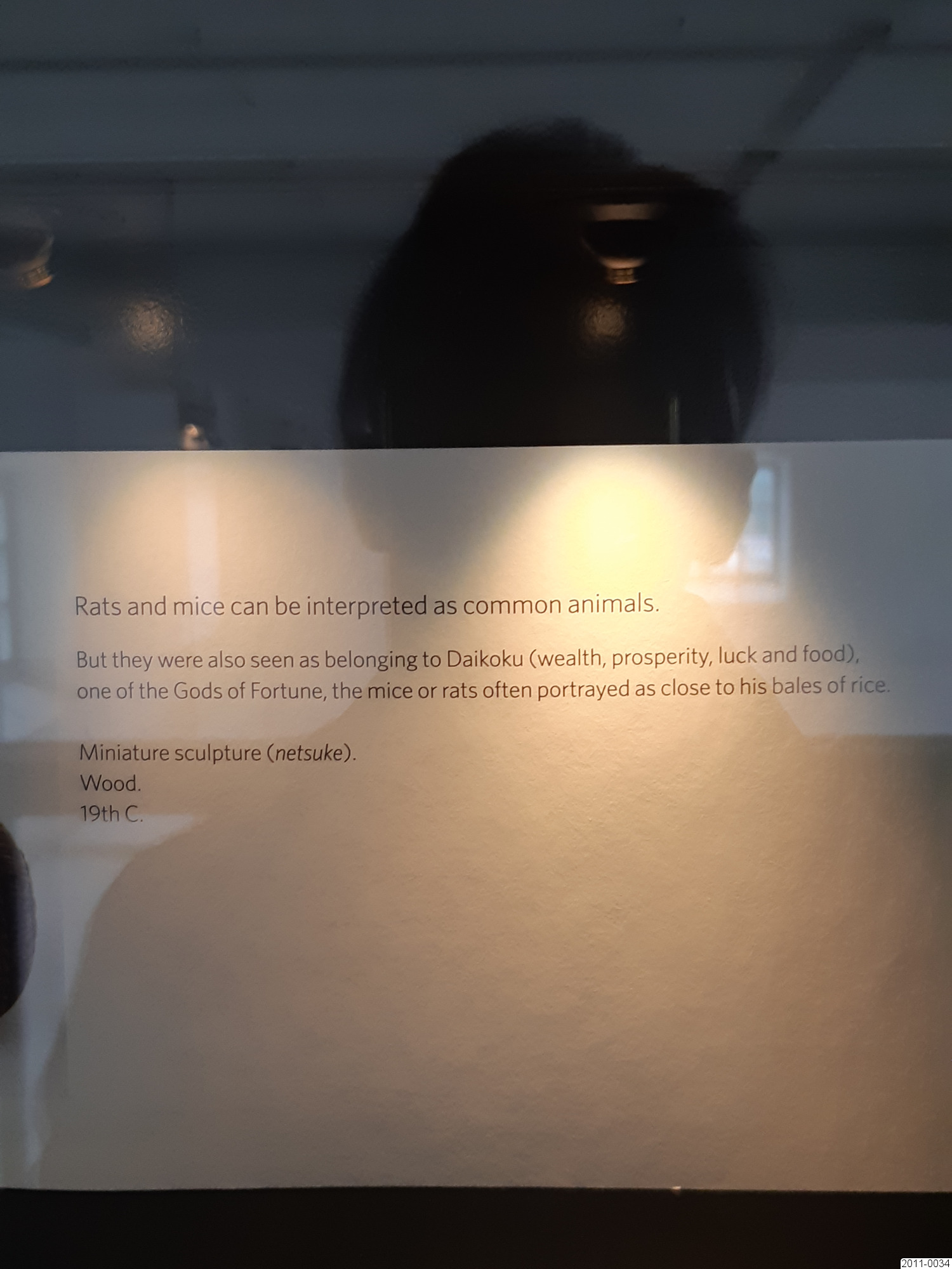 Rats and mice can be interpreted as common animals. But they were also seen as belonging to Daikoku (wealth, prosperity, luck and food), one of the Gods of Fortune, the mice or rats often portrayed as close to his bales of rice