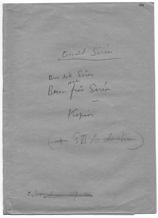 • Osvald Sirén. Brev till Sirén och brev från Sirén.