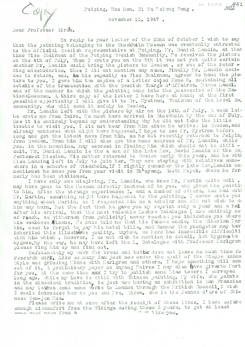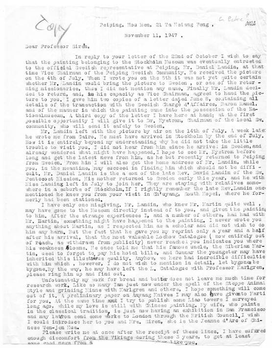 • Tillverkad 1947-11-11 i Peking, Kina, Asien av Ecke, Gustav.