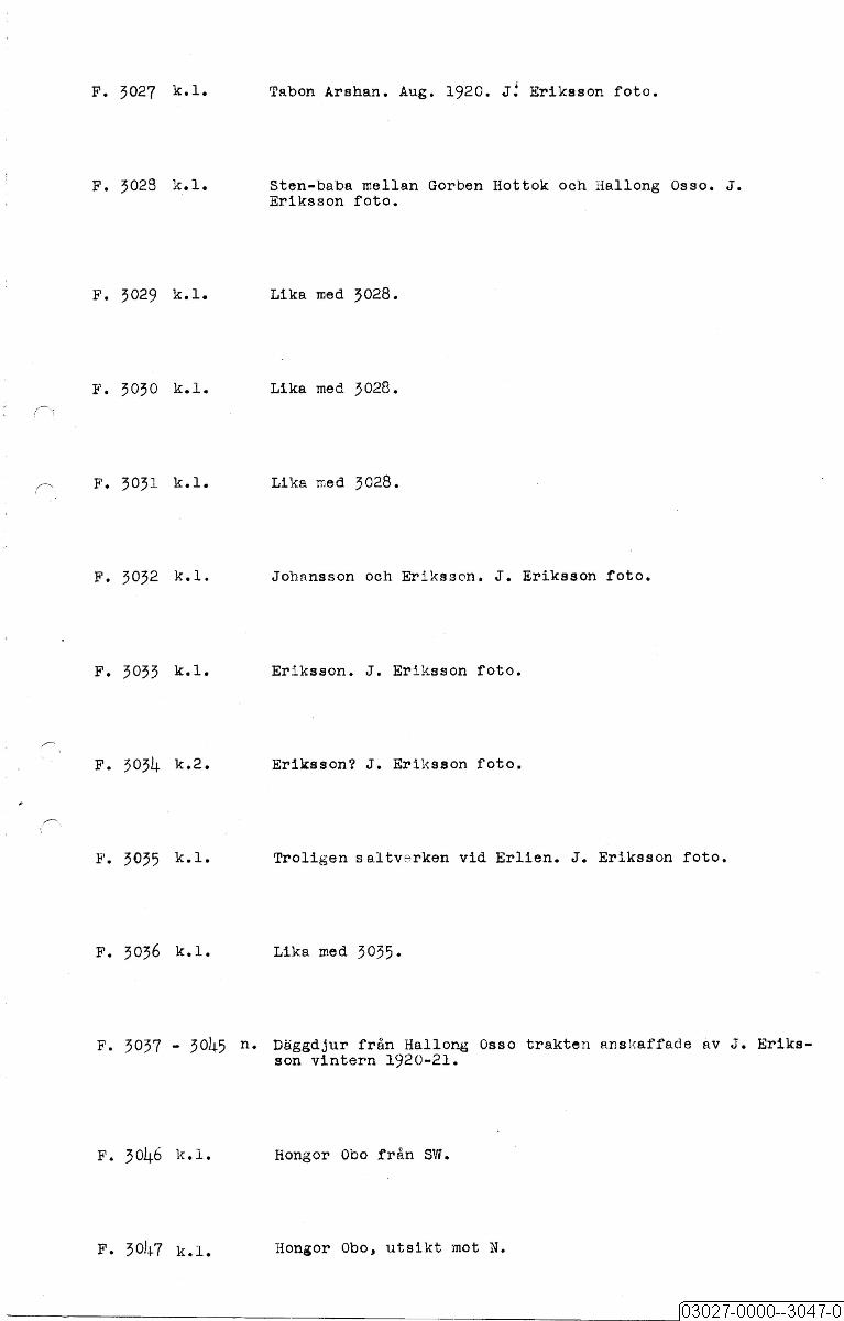 • Sida ur katalog för fotografier av Johan Gunnar Andersson, F.2000-3984.