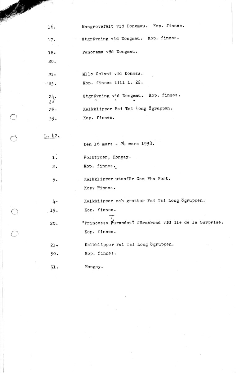 • Sida ur katalog för Leicabilder. Bilder från Johan Gunnar Anderssons resa i Kina och Indokina 1936-1938. L.3-L.42
